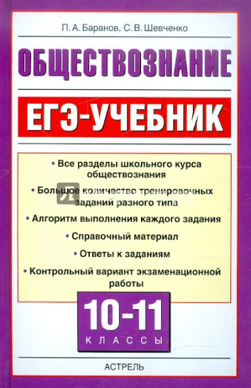 ЕГЭ-учебник по обществознанию - уникальное пособие для учащихся 10 - 11 классов и абитуриентов, позволяющее в кратчайшие сроки и без привлечения других пособий успешно подготовиться к сдаче единого государственного экзамена.