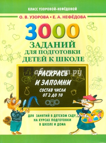 Известные методисты, учителя-практики О. В. Узорова и Е. А.Нефедова разработали пособие с упражнениями и заданиями на раскрашивание, которые помогут детям запомнить состав числа от 2 до 10.