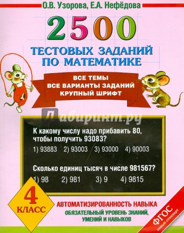 Пособие содержит тестовые задания по всем основным темам курса математики для 4 класса. Впервые для каждой изученной темы предложены тесты, позволяющие проверить, как ученик её усвоил. При помощи тестов осуществляются закрепление и проверка полученных знаний, чётко выявляются "слабые места". Данные тесты с первого класса готовят ребёнка к последующим тестовым испытаниям, в том числе к Государственной итоговой аттестации в 9 и 11 классах.