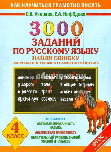 Пособие содержит 12 блоков примеров по всем основным темам программы по русскому языку для 4 класса. Задачи учащихся - найти и исправить орфографические ошибки в словах, что поможет им отработать и закрепить навыки грамотного письма.