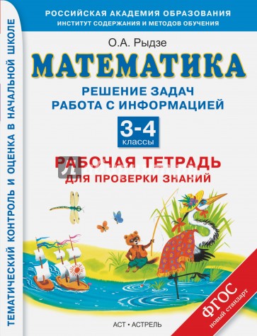 Пособие предназначено для подготовки и проведения этапного контроля предметных умений по двум разделам школьного курса математики - "Решение задач. Работа с информацией" с помощью заданий, ориентированных на самостоятельные учебные действия учеников 3 - 4 классов. При наличии базовой предметной подготовки по любому учебнику математики ученик может самостоятельно приступить к самоконтролю успешности освоения задачного и геометрического материала.