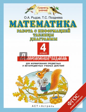 Пособие предназначено для выработки у школьников навыка работы с информацией, представления данных и работы с таблицей. Удобное расположение материала позволит учащемуся 4-го класса быстро выполнить задание и легко проверить результат. Использование предлагаемых тренировочных заданий гарантирует повышение эффективности обучения. Пособие может быть использовано как на уроках математики, так и при самостоятельной работе дома.