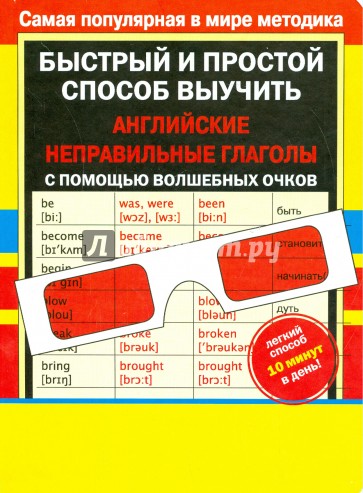 Если надеть волшебные очки две формы неправильных глаголов исчезнут, и ребенок сможет потренироваться, а потом, сняв очки, проверить себя. С помощью волшебных очков можно закрепить пройденный материал и проверить свои знания!