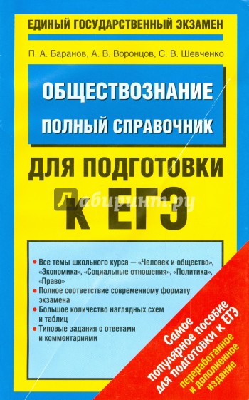 В справочнике, адресованном выпускникам средней школы и абитуриентам, в полном объеме дан материал курса "Обществознание", который проверяется на едином государственном экзамене. Структура книги соответствует современному кодификатору элементов содержания по предмету, на основе которого составлены экзаменационные задания - контрольные измерительные материалы ЕГЭ (КИМы).