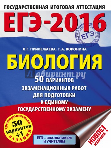 Вниманию школьников и абитуриентов предлагается новое пособие для подготовки ЕГЭ, которое содержит 50 вариантов типовых экзаменационных работ по биологии. 51-й вариант - контрольный.