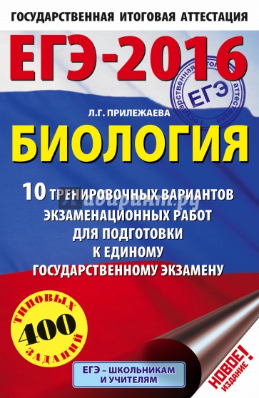 Вниманию школьников и абитуриентов впервые предлагается пособие для подготовки к ЕГЭ, которое содержит 10 вариантов типовых экзаменационных работ по биологии.