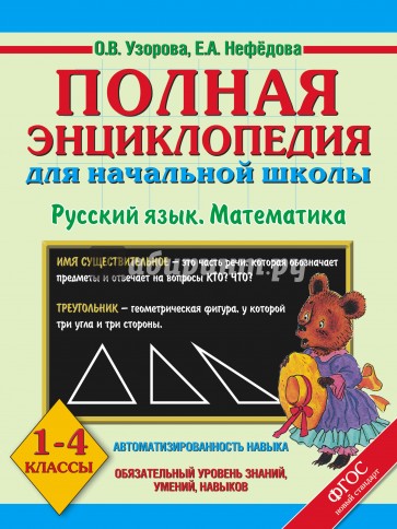 Энциклопедия предназначена для учащихся начальных классов, учителей и родителей. Материал книги адаптирован ко всем программам и учебникам начальной школы. Пособие может быть использовано на уроках русского языка и математики, а также для занятий дома.