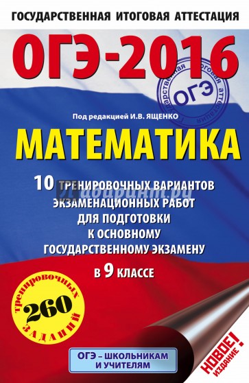 Вниманию выпускников 9 классов общеобразовательных организаций предлагается новое учебное пособие для подготовки к основному государственному экзамену (ОГЭ) по математике, которое содержит 10 вариантов экзаменационных работ.