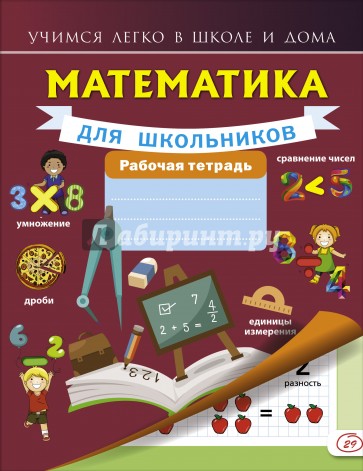 Рабочая тетрадь по математике представляет собой краткий справочник по основным правилам арифметики, а также сборник заданий и упражнений.Книга содержит информацию по всем основным темам математики, изучаемым в начальной школе: «Числа и цифры», «Арифметические действия», «Единицы измерения», «Геометрические понятия» и др.