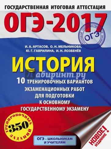 Вниманию выпускников 9 классов общеобразовательных организаций предлагается учебное пособие для подготовки к основному государственному экзамену (ОГЭ), которое содержит 10 вариантов экзаменационных работ. Каждый вариант включает задания разных типов и уровня сложности по всем разделам курса истории России: "Древность и Средневековье", "Новое время", "Новейшая история", знание содержания которых проверяется в рамках ОГЭ. Значительный по объёму банк экзаменационных материалов (300 заданий части 1, 50 - части 2) предоставляет отличную возможность для интенсивной тренировки и овладения необходимыми для успешной сдачи ОГЭ знаниями, умениями и навыками. В конце книги даны ответы для самопроверки на все задания части 1 и основное содержание ответов на задания части 2. Авторы пособия - разработчики контрольных измерительных материалов, используемых для проведения основного государственного экзамена по истории в 9 классе.