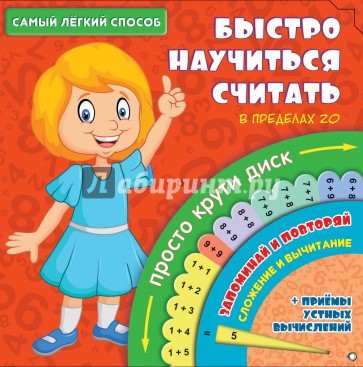 Выучить все варианты на сложение и вычитание в пределах 20 ребёнку непросто. Но эти знания необходимы для успешного овладения более сложными приёмами вычислений. Решить проблему поможет книга-тренажёр. С ней ребёнок легко и быстро запомнит скучные таблицы с примерами, освоит основные приёмы устных вычислений, а также научится проверять себя. И всё это без утомительной зубрёжки в процессе весёлой игры с волшебным диском! Просто и эффективно: крутим диск, решаем примеры, сверяемся с ответами, запоминаем. Табличные случаи сложения и вычитания в пределах 20 распределены на три круга. А четвёртый круг - бонус! Здесь собраны примеры для совершенствования навыков устных вычислений. Учимся играя!