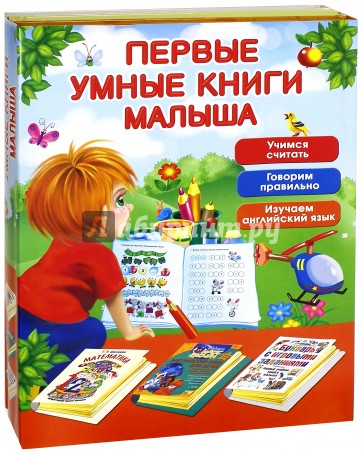 Первые умные книги малыша (Комплект из книг: Г. П. Шалаева "Математика. Первый учебник вашего малыша"; Т.В. Чупина "Английский язык для детей. Учимся и играем с героями любимых мультфильмов"; Г.П. Шалаева "Букварь с игровыми заданиями. Первый учебник вашего малыша.
