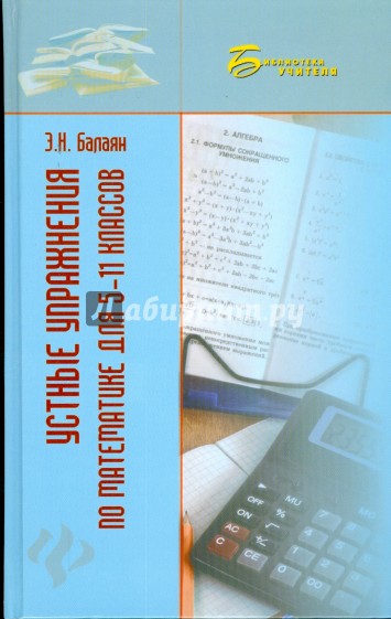 Предлагаемая вниманию читателя очередная книга известного учителя математики Э.Н. Балаяна, автора таких книг как "Репетитор по математике для поступающих в вузы" (7 изданий), "Как написать ЕГЭ по математике на 100 баллов" (4 издания) и др., посвящена устным упражнениям по математике для учащихся 5-11 классов.