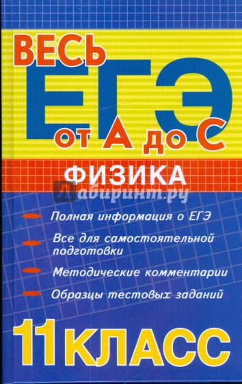 Предлагаемое учебное пособие представляет собой систематически изложенный материал в соответствии с программой по физике для общеобразовательных школ. Пособие состоит из введения, семи разделов, списка литературы и приложении Во введении поясняется специфика экзаменационном работы ЕГЭ по физике 2009 г. В разделах 1-5 представлены теоретические сведения но темам школьного курса, подлежащим контролю на ЕГЭ. Краткость изложения теоретического материала соответствует цели систематического повторения предмета; при этом особенности протекания физических явлений в различных условиях и методы практического применения теоретических знаний объясняются в контексте решения задач. В каждой главе представлен теоретический материал и приведены примеры решения задач базового, повышенного и высокого уровней сложности заданий ЕГЭ из демонстрационных версий 2002-2009 гг. Анализируются распространенные ошибки учеников при выполнении аналогичных заданий. Показанные схемы решения задач с развернутым ответом соответствуют критериям проверки экзаменационных работ. В 6-м и 7-м разделах представлены задания для самостоятельной работы и рабочая тетрадь с бланками для ответов на задания частей А и В. В приложениях приведен кодификатор элементов содержания по физике для составления контрольно-измерительных материалов (КИН) единого государственного экзамена 2009 г. и справочные материалы, необходимые для выполнения заданий, Пособие предназначено для широкого круга учащихся, желающих самостоятельно организовать систематическое повторение школьного курса физики для подготовки к единому государственному экзамену и провести самоконтроль.
