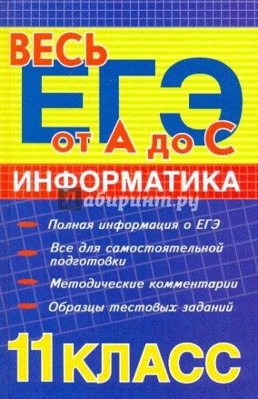 В пособии рассмотрены наиболее важные для подготовки к ЕГЭ теоретические вопросы, особое внимание уделено алгебре логики, системам счисления, кодированию информации, измерению количества информации. Рассмотрены примеры решения задач, большинство из которых использовалось в вариантах ЕГЭ по информатике. Показаны приемы и методы математической формализации задачи, разработки алгоритмов и их реализации на языках программирования; подробно прокомментированы типовые приемы алгоритмизации и программирования. Предназначено для самостоятельной подготовки учащихся 11-х классов общеобразовательных учреждений к ЕГЭ, а также для учителей, которые могут использовать материал данного учебного пособия как при прохождении курса "Информатика и ИКТ", так и при подготовке к ЕГЭ.