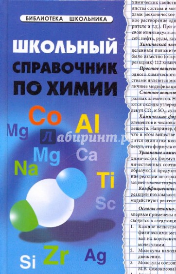 Данный справочник предназначен для учащихся общеобразовательных школ, а также может быть полезен абитуриентам при поступлении в вузы. Содержит основы теоретической, неорганической и органической химии, необходимые для изучения данного курса. Материал, содержащийся в справочнике, полностью соответствует курсу общеобразовательной школьной программы.
