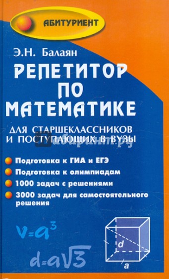 Репетитор предназначен школьникам и выпускникам для самостоятельной подготовки к сдаче ГИА, ЕГЭ и олимпиадам, а также слушателям подготовительных отделений, учителям математики, студентам педвузов и репетиторам.