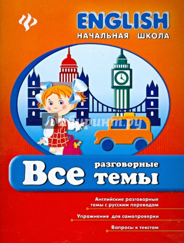 Книга "Все разговорные темы" содержит тексты по всем темам, которые должен усвоить ребенок в начальной школе. Представленные материалы предлагают лексико-грамматический минимум, рассчитанный на усвоение учащимися 1-4 классов общеобразовательной школы, и отвечают учебному плану, а тематика и сферы общения - действующим программам по иностранным языкам.