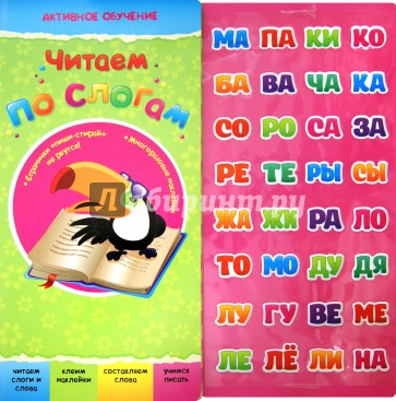 В этой книге тебя ждут многоразовые яркие наклейки-слоги. Приклеивай наклейки, запоминай слоги и читай! С помощью наклеек-слогов можно научиться составлять много разных слов. Все страницы книги - "пиши-стирай": ты можешь писать слова фломастером, стирать тряпочкой и писать снова!