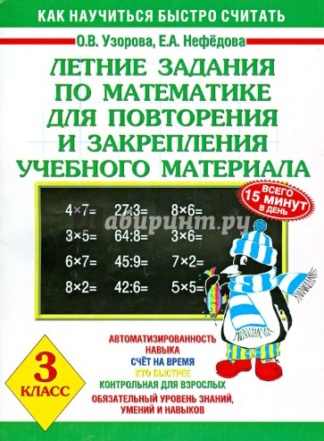 Выполнение этих заданий принесет огромную пользу и во время учебного года. Например, в 3 классе в первой половине года можно пользоваться книгой "Летние задания по математике для повторения и закрепления учебного материала. 2 класс", тратя на упражнения 5-7 минут в день и делая по половине страницы. Во второй половине года можно заниматься по книге "Летние задания по математике для повторения и закрепления учебного материала. 3 класс".