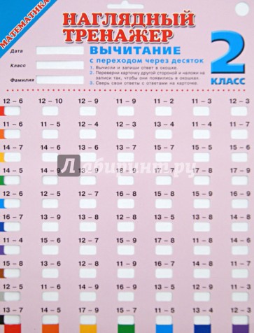 Наглядный тренажер окажется незаменимым помощником при изучении вычитания с переходом через десяток. Пользоваться им очень просто: