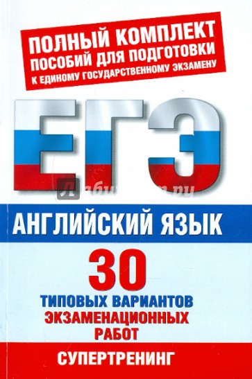 30 типовых вариантов экзаменационных работ ЕГЭ по английскому языку - уникальное пособие для учащихся 10-11 классов и абитуриентов, позволяющее в кратчайшие сроки и без привлечения других пособий успешно подготовиться к сдаче единого государственного экзамена.