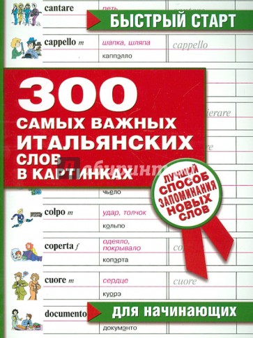 В книгу включены 300 широкоупотребительных слов современного итальянского языка (существительные, прилагательные, глаголы, наречия, местоимения). Картинка, русифицированная транскрипция, перевод на русский язык, письменное воспроизведение слова служат для активации различных видов памяти и в конечном счете позволяют быстрее запомнить необходимую лексику.