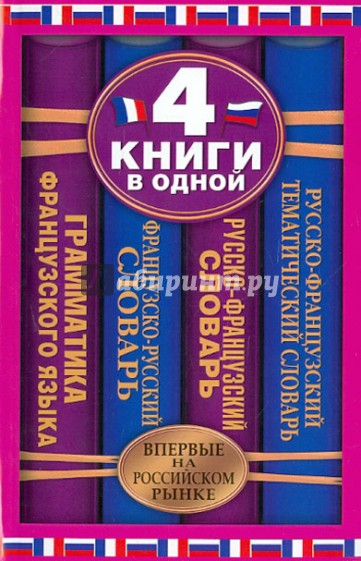 Словарь состоит из 4 книг: французско-русского словаря, русско-французского словаря для чтения и перевода текстов средней сложности, русско-французского тематического словаря для пополнения активного словарного запаса пользователя и развития устной речи и краткой грамматики французского языка.