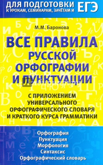 Пособие содержит основные правила орфографии, пунктуации, морфологии и синтаксиса русского языка, а также орфографический словарь.