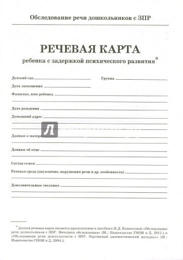 Данная речевая карта является приложением к пособиям И.Д. Коненковой "Обследование речи дошкольников с ЗПР. Методика обследования" и "Обследование речи дошкольников с ЗПР. Картинный диагностический материал"