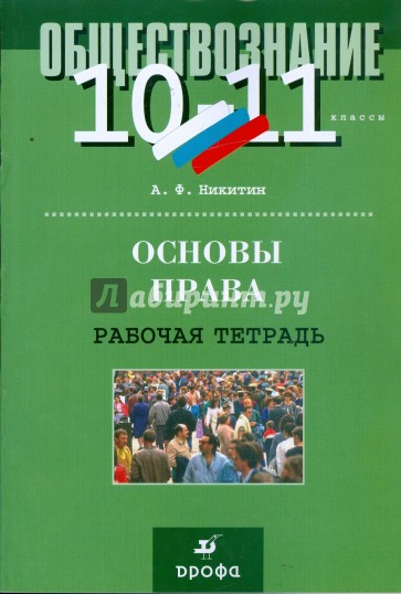 Рабочая тетрадь соответствует содержанию учебника А.Ф. Никитина "Основы права" для 10-11 классов, последовательность вопросов вытекает из тематической структуры параграфов. Материал тетради поможет старшеклассникам закрепить полученные знания, а преподавателям - организовать учебную деятельность учащихся на уроке. Рабочая тетрадь создана автором курса и составляет единый комплект с учебником и методическим пособием.