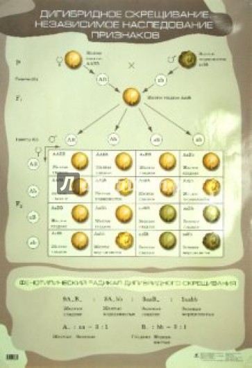 Данный плакат иллюстрирует дигибридное скрещивание и независимое наследование признаков.