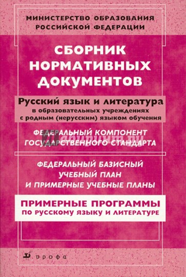 Сборник включает документы, адресованные учителям русского языка и литературы: федеральный компонент государственного стандарта общего образования по русскому языку и литературе; федеральный базисный учебный план и примерные учебные планы; примерные программы по русскому языку и литературе.