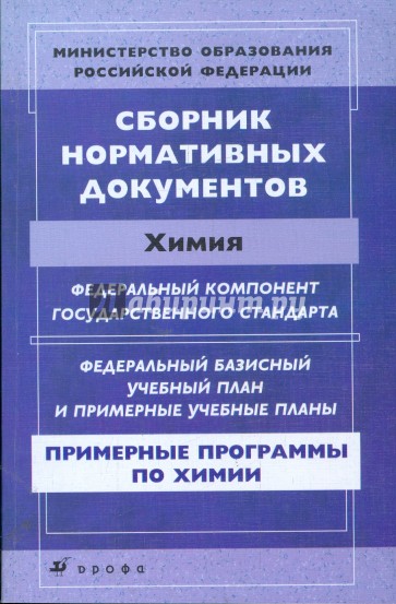 Сборник включает документы, адресованные учителям химии: федеральный компонент государственного стандарта общего образования, федеральный базисный учебный план, примерные учебные планы для базового и профильного уровня, примерные программы основного и среднего (полного) общего образования по химии (базового и профильного уровня).
