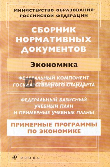 Сборник включает документы, адресованные учителям обществознания: федеральный компонент государственного стандарта общего образования; федеральный базисный учебный план и примерные учебные планы среднего (полного) общего образования по экономике (базовый и профильный уровень); примерные программы среднего (полного) общего образования по экономике (базовый и профильный уровень).