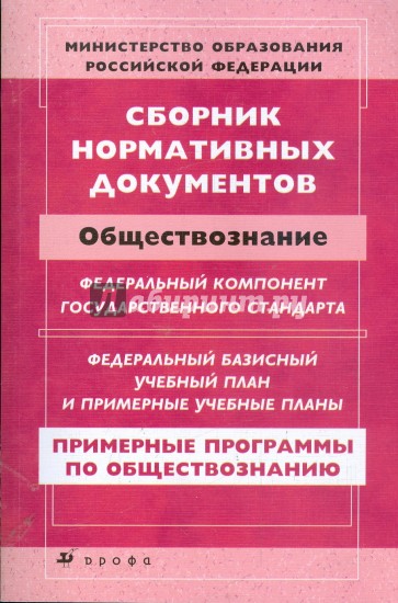 Сборник включает документы, адресованные учителям обществознания: федеральный компонент государственного стандарта общего образования по обществознанию; федеральный базисный учебный план и примерные учебные планы основного общего и среднего (полного) общего образования по обществознанию (базовый и профильный уровень); примерные программы по обществознанию основного общего и среднего (полного) общего образования (базовый и профильный уровень).