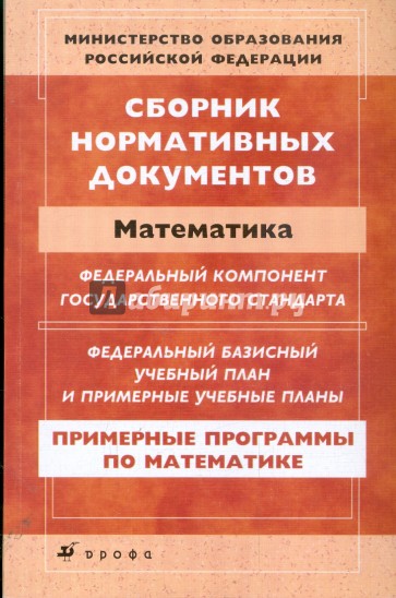 Сборник включает документы, адресованные учителям математики: федеральный компонент государственного стандарта общего образования, федеральный базисный учебный план, примерные учебные планы и примерные программы для базового и профильного уровня.