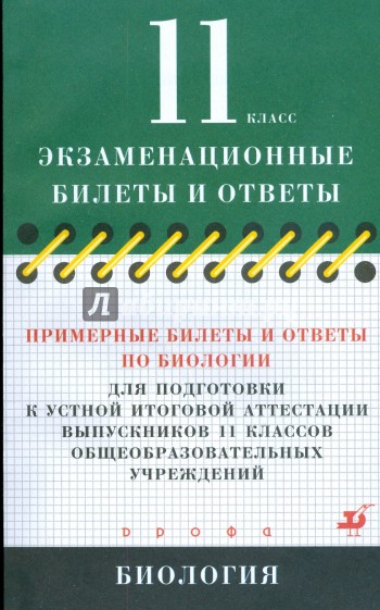 В пособии представлены развернутые ответы на вопросы примерных билетов по биологии, которые предлагаются для итогового экзамена в 11 классе общеобразовательных учреждений.
