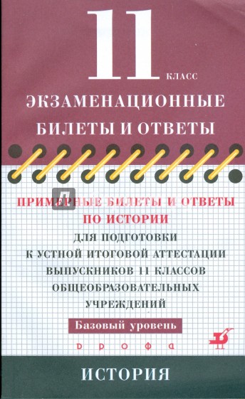 Примерные билеты и ответы по истории для подготовки к устной итоговой аттестации выпускников 11 классов общеобразовательных учреждений. Базовый уровень