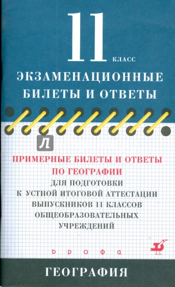 В книге представлены ответы на примерные билеты по географии, которые будут предложены на экзамене в 11 классе.