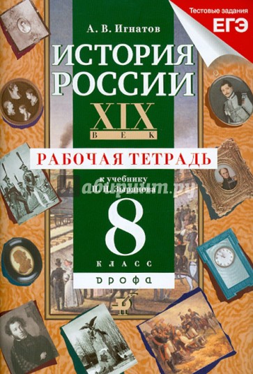 Рабочая тетрадь является частью учебно-методического комплекта к учебнику П.Н.Зырянова и полностью соответствует ему по структуре и содержанию. Цель рабочей тетради - способствовать закреплению и обогащению знаний по курсу истории России XIX в., полученных на уроках. Материал тетради может быть использован для проведения текущего и итогового контроля знаний учащихся.