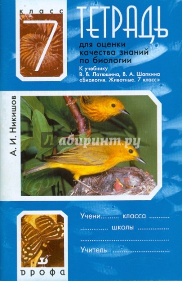 Тетрадь содержит разнообразные задания, соответствующие учебной программе по биологии 7 класса, которые направлены на проверку теоретических знаний и практических умений школьников. Она предназначена для проведения на уроках текущего и итогового контроля по основным темам курса.
