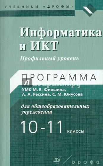 Программа курса информатики и ИКТ является частью учебно-методического комплекта по информатике и ИКТ для 10-11 классов авторов М.Е.Фиошина, А.А.Рессина, С.М.Юнусова. Программа соответствует федеральному компоненту государственного стандарта общего образования.
