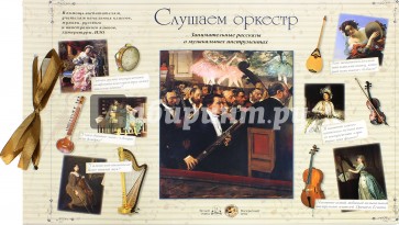 Демонстрационный материал по теме "Слушаем оркестр" включает в себя рассказы о музыкальных инструментах и их взаимодействии в оркестре. Материал о них можно использовать на уроках, на дополнительных занятиях, размещать в классных уголках.