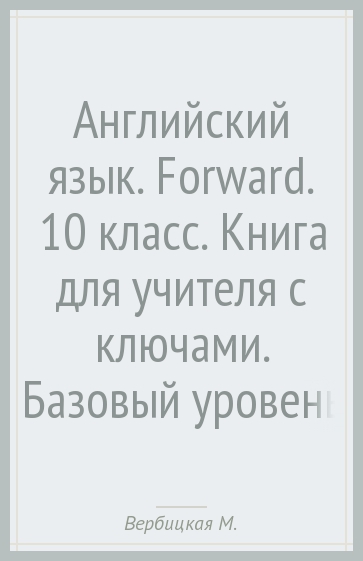 Книга для учителя "Английский язык" (серия "Forward") для 10 класса общеобразовательных организаций разработана в рамках федерального государственного образовательного стандарта среднего (полного) общего образования (2012) с учётом его требований к результатам освоения основной образовательной программы и планируемых результатов освоения учебного предмета "Английский язык" в 10 классе общеобразовательных организаций. Книга для учителя для 10 класса общеобразовательных организаций содержит тематическое планирование курса с характеристикой деятельности учащихся, ключи к заданиям учебника и рабочей тетради, тексты аудиоприложений к учебнику и рабочей тетради, а также четыре контрольные работы (устная и письменная части) с подробными комментариями и ключами к заданиям. УМК для 10 класса входит в систему учебно-методических комплектов "Алгоритм успеха".