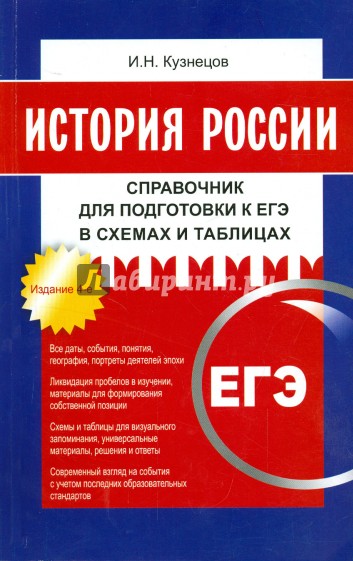 Пособие разработано специально для учащихся средних школ, колледжей, гимназий, техникумов и абитуриентов для использования при подготовке к Единому государственному экзамену по курсу истории России, а также преподавателей и репетиторов, организующих подготовку к экзамену. Книга составлена в форме структурно-логических схем и таблиц, в которых дается краткое содержание систематизированного курса истории России с древних времен до настоящего времени. Материал разработан в соответствии с учебными программами и новейшими требованиями по подготовке к сдаче ЕГЭ по истории России. Перечень основных событий и дат приводится в хронологической таблице.