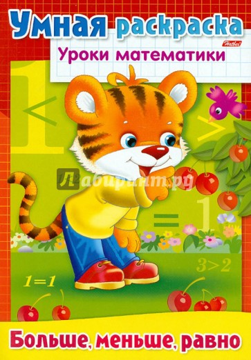 Развивающая раскраска с занимательными математическими заданиями поможет малышу освоить понятия "больше", "меньше", "равно".