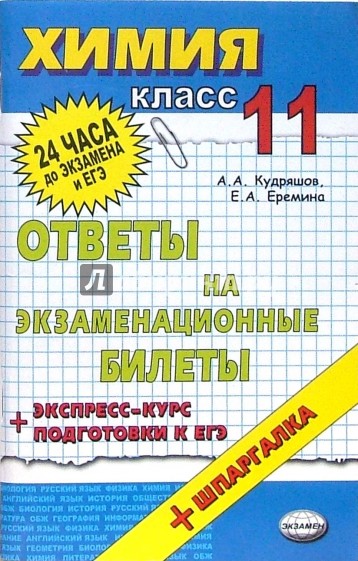 В данном пособии приводятся ответы на все вопросы экзаменационных билетов по химии, предлагаемых Министерством образования и науки РФ для проведения устной итоговой аттестации выпускников 11-х классов общеобразовательных школ. Подробный разбор типового теста Единого государственного экзамена по химии поможет подготовиться к экзамену в кратчайшие сроки (24 часа).