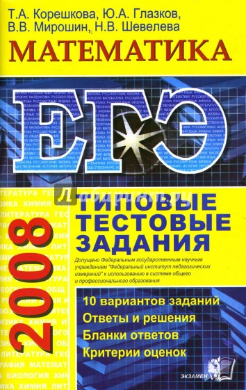 Типовые тестовые задания по математике содержат 10 вариантов комплектов заданий, составленных с учетом всех особенностей и требований Единого государственного экзамена в 2008 году, а также ответы к каждому заданию. Кроме того, приведены образцы бланков, используемых на ЕГЭ для записи ответов и решений.