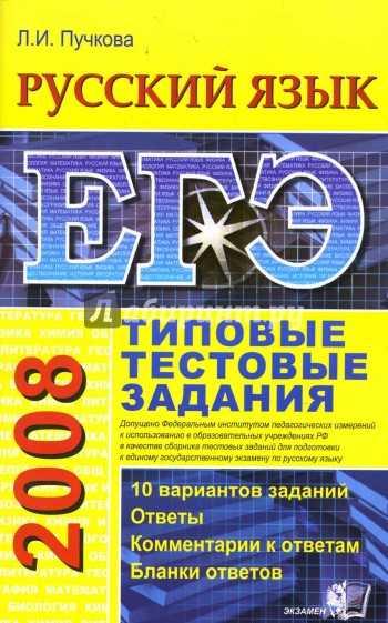 Типовые тестовые задания по русскому языку содержат 10 вариантов комплектов заданий, составленных с учетом всех особенностей и требований Единого государственного экзамена в 2008 году, а также ответы к каждому заданию. Задания не воспроизводят экзаменационные работы, использованные в ЕГЭ, а созданы по аналогии.